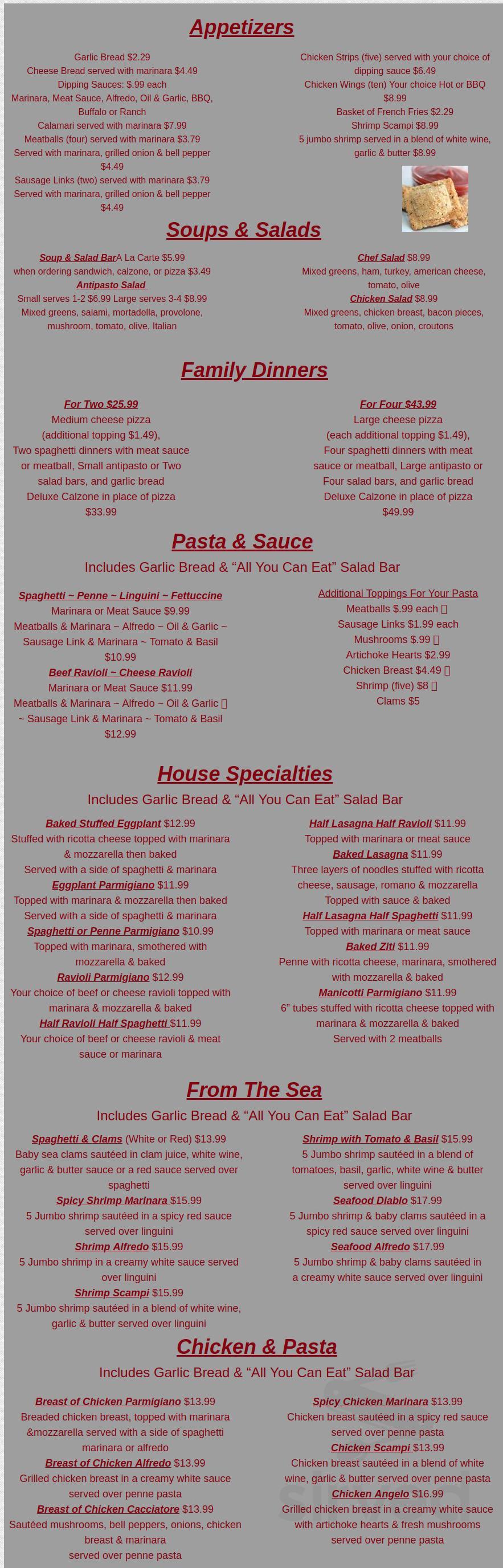 Menu Angelos Pizza Italian Restaurant
